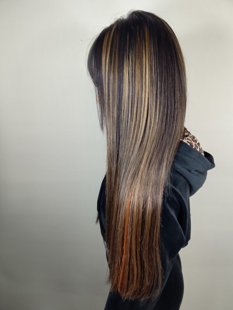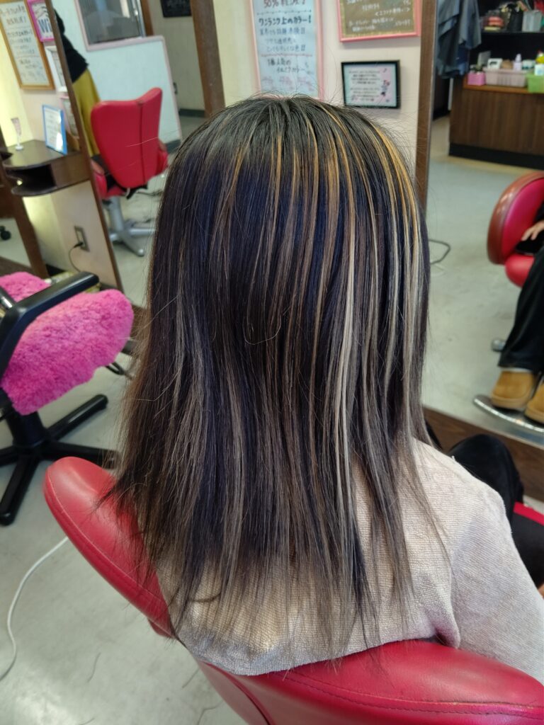 地毛のメッシュに合わせてエクステも