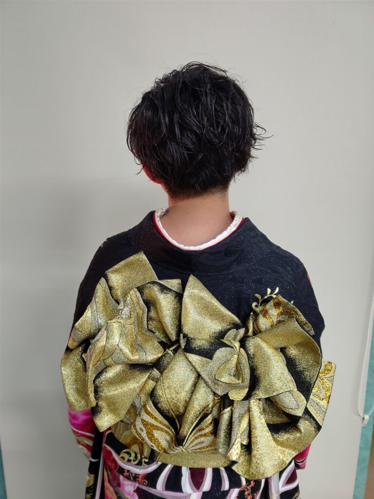 ショートカットの振袖