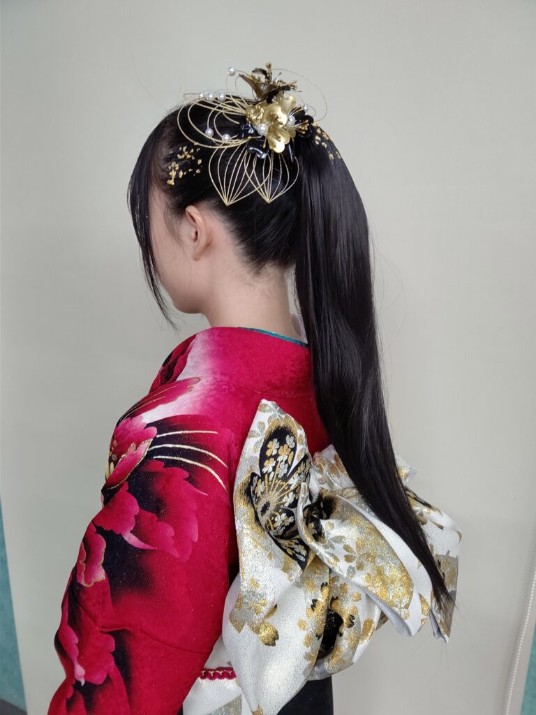 下した長い黒髪と髪飾りが抜群!